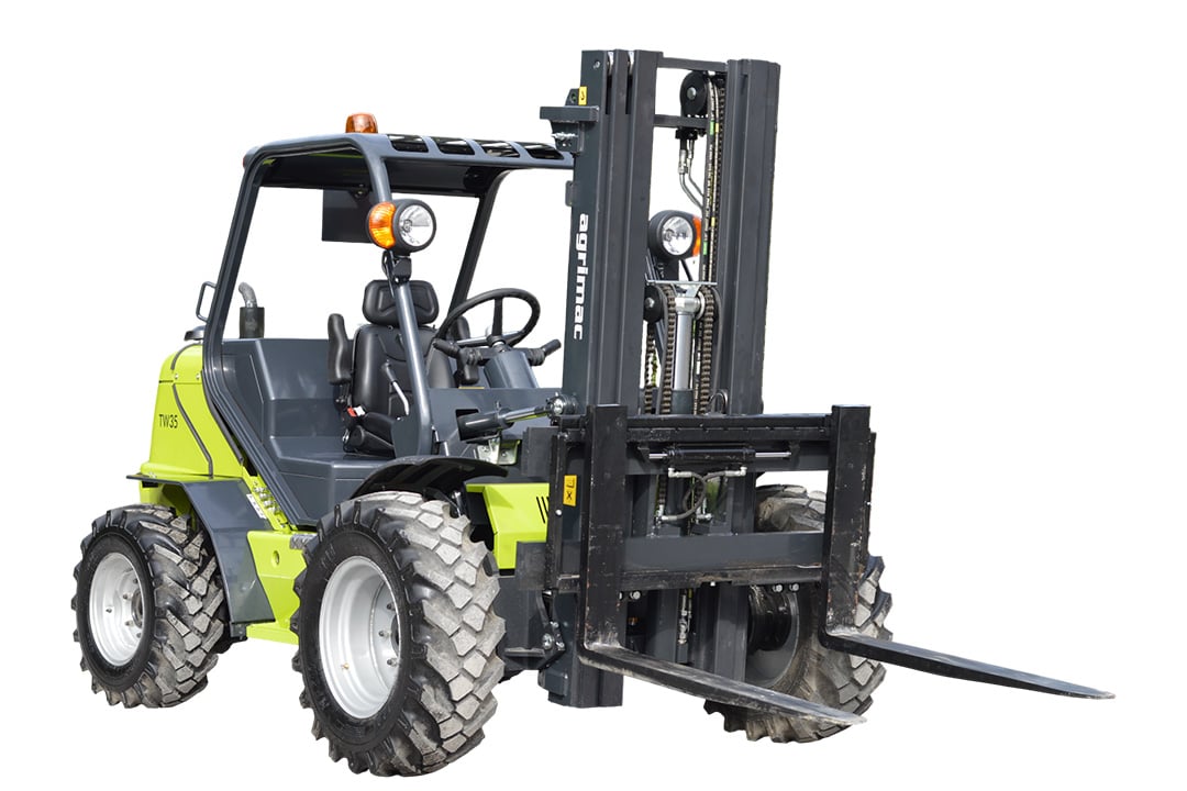 The AGRIMAC TW35 is the most powerful rough terrain forklift in the range, capable of lifting up to 3,500 kg with masts of up to 6 metres. Designed to deliver maximum performance in agriculture, construction and recycling, it combines strength and precision in the most